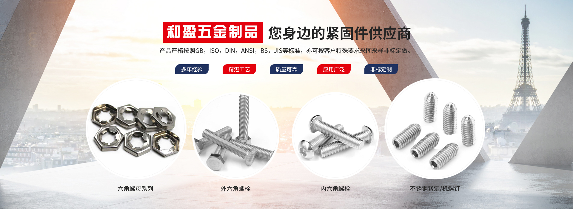 興化市和盈五金制品有限公司創(chuàng)建于2010年,坐落在全國不銹鋼名鎮(zhèn)———江蘇戴南。本公司集當(dāng)?shù)夭讳P鋼優(yōu)勢和全國銷售網(wǎng)點,以不銹鋼緊固件產(chǎn)品為主體的企業(yè)。我們將始終如一的堅持以客戶為中心,堅持以品質(zhì)取勝的發(fā)展戰(zhàn)略,依靠科學(xué)技術(shù)不斷創(chuàng)新。秉承這種精神,我們一起和諧合作,共贏未來。產(chǎn)品嚴格按照GB,ISO,DIN,ANSI,BS,JIS等標(biāo)準(zhǔn),亦可按客戶特殊要求來圖來樣非標(biāo)定做。產(chǎn)品廣泛應(yīng)用......